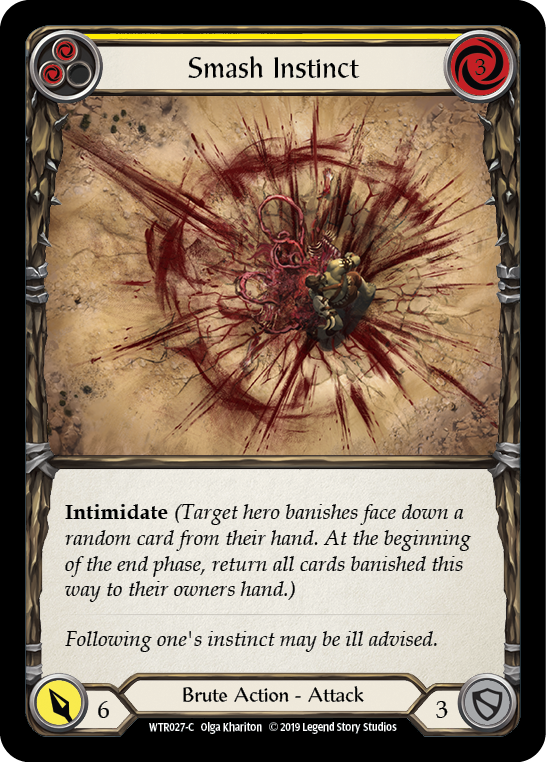 Intimidate (Target hero banishes face down a random card from their hand. At the beginning of the end phase, return all cards banished this way to their owners hand.)